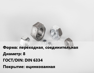 Гайка переходная, соединительная D=8 DIN 6334 оцинкованная, шт цена от 17.59 ₽ / кг, где купить, условия доставки в Волгограде и Волгоградской области
