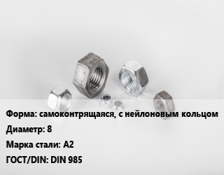 Гайка самоконтрящаяся, с нейлоновым кольцом D=8 Сталь: А2 DIN 985, шт цена от 2.7 ₽ / кг, где купить, условия доставки в Волгограде и Волгоградской области