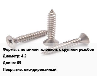 Саморез с потайной головкой, с крупной резьбой D=4.2 L=65 оксидированный
