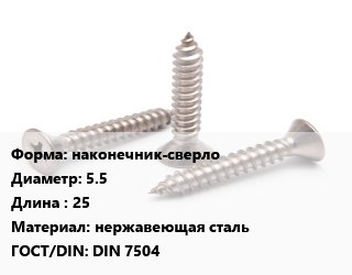 Саморез наконечник-сверло D=5.5 L=25 нержавеющая сталь ГОСТ: DIN 7504