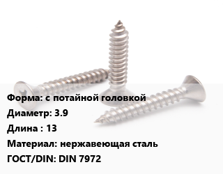 Саморез с потайной головкой D=3.9 L=13 нержавеющая сталь ГОСТ: DIN 7972