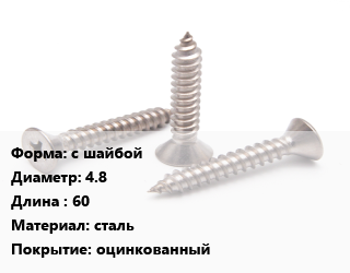 Саморез с шайбой D=4.8 L=60 сталь оцинкованный, упаковка 2000 шт цена от 2 280 ₽ / кг, где купить, условия доставки в Волгограде и Волгоградской области
