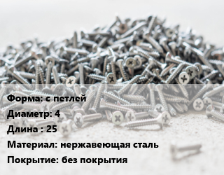 Шуруп с петлей 4х25 нержавеющая сталь без покрытия, упаковка 500 шт цена По запросу где купить, условия доставки в Волгограде и Волгоградской области