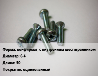 Винт конфирмат, с внутренним шестигранником 6.4х50 оцинкованный, цена за шт, кг цена от 12.6 ₽ / кг, где купить, условия доставки в Волгограде и Волгоградской области