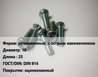 Винт установочный, с острым наконечником 10х25 DIN 914 оцинкованный, кг цена от 1 676 ₽ / кг, где купить, условия доставки в Волгограде и Волгоградской области