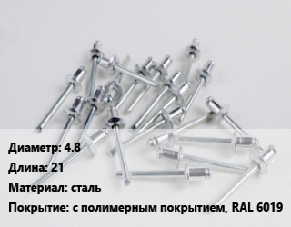 Заклепка 4.8х21 сталь с полимерным покрытием, RAL 6019, шт, вытяжная, поле 16мм цена от 8.1 ₽ / шт, где купить, условия доставки в Волгограде и Волгоградской области