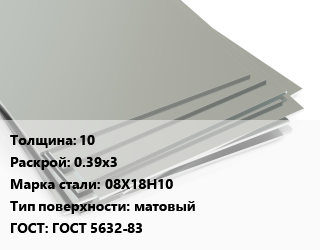 Лист нержавеющий 10 0.39х3 Сталь: 08Х18Н10 Тип:матовый ГОСТ 5632-83